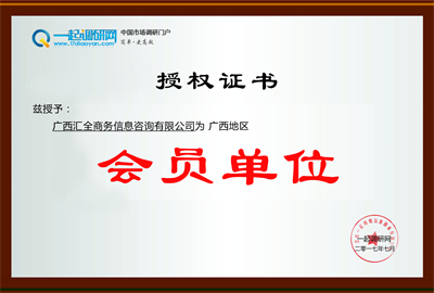 广西汇全商务信息咨询有限公司是广西省专业的市场调研公司,通过一起调研网_市场调研门户网认证,正式成为一起调研网广西地区会员企业。